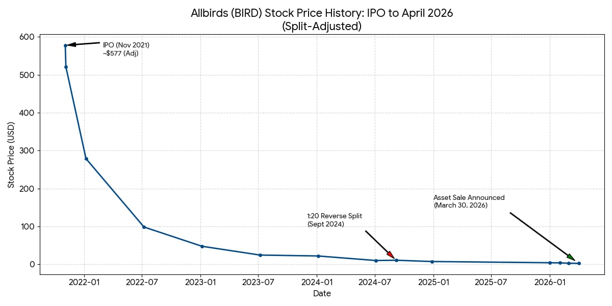 Allbirds, all gone: High-flying sneaker brand Allbirds $BIRD ( ▲ 2.67% ) , famed for its Merino wool uppers and a fave with Silicon Valley types, has crashed back to earth with less grace than Icarus in a heatwave. After hitting a $4 billion valuation in 2021, it’s selling its assets for $39 million to brand management firm American Exchange Group. “Allbirds has gone from being a highflier to a dead parrot,” GlobalData consultant Neil Saunders told the New York Times, with a touching nod to the Monty Python sketch about “ex-parrots.” Despite 60 retail locations at the end of 2023, the shoes failed to catch on outside the tech world. And now, the tech uniform is sneakers from Hoka and On.