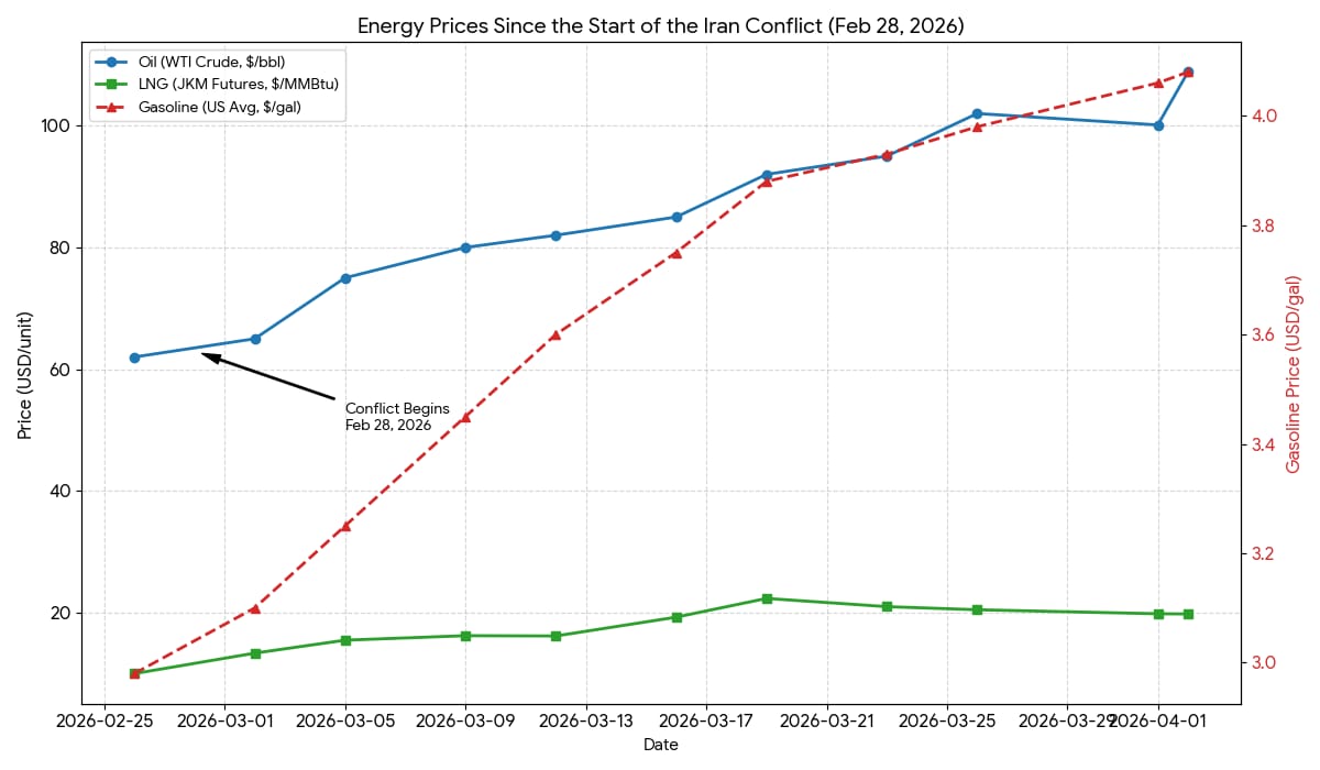 Instead, Trump doubled down on his threats against Iran, and produced no clear plan for reopening the Strait. That’s given Iran leverage. It’s now letting ships owned by its allies go through without paying tolls. Since March 1, 71% of ships that have passed through the strait are owned by Iran, coming or going from Iranian ports, or part of the sanctions-busting shadow fleet carrying Iranian oil, Lloyd’s List Intelligence said this week. That’s fewer than a dozen ships a week right now, compared with 700 - 900 a week before the war. That leaves oil prices above $100 a barrel, up about 46% in the past month, gasoline up 30% to over $4 a gallon and likely to stay there, and in Europe, LNG prices are up 35%.
